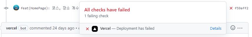 처음엔 테스트 하느라 marge를 해버렸는데 merge를 해버리면 X표시를 지울 수 없다 ,, 박제된 기분,,