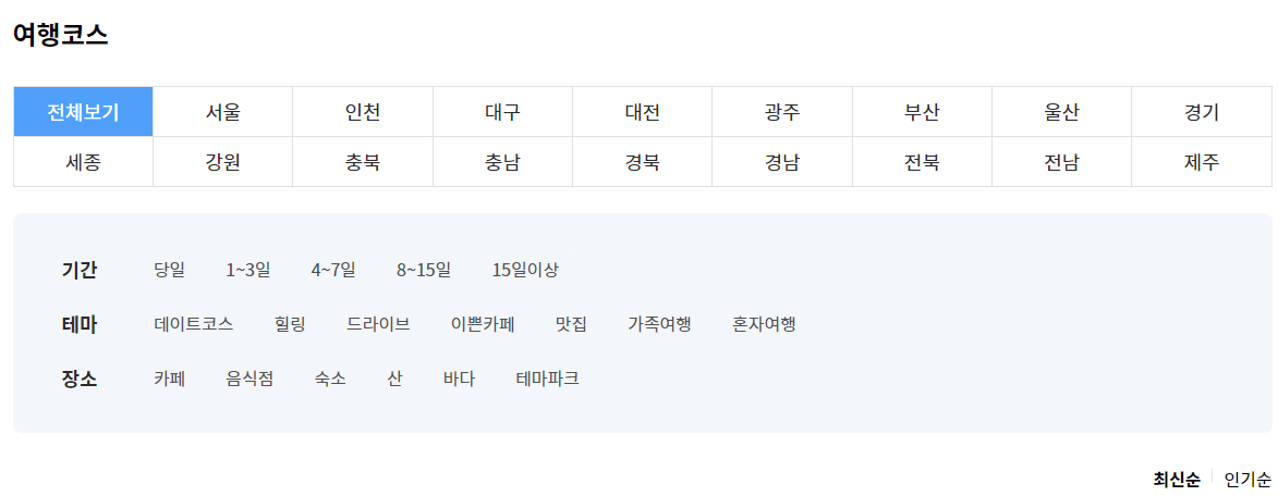 1. 단순 페이지 진입 시 나열되는 것이 아니라 검색 필터를 변경하면 검색 필터에 맞게 리스트가 초기화 되고