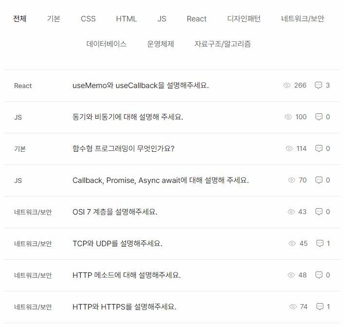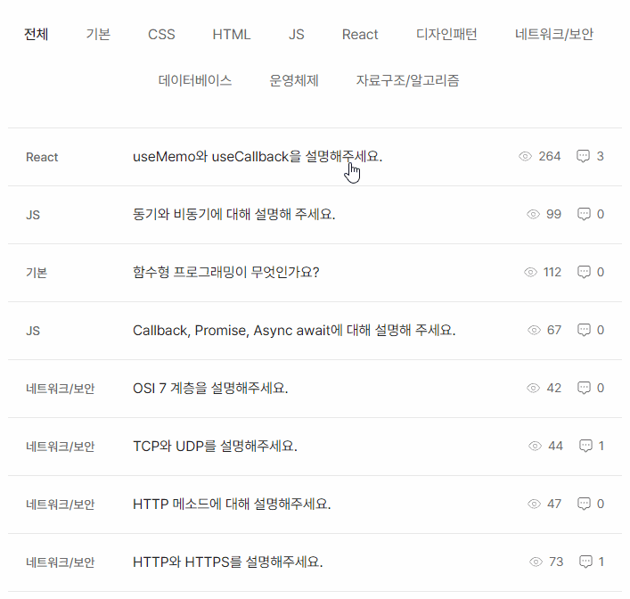 1. 질문 목록을 클릭하면 해당 질문의 카테고리 정보와 함께 상세 페이지([id].tsx)로 이동한다.