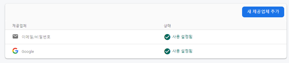 Authentication 섹션에서 로그인 방법을 추가해 주어야 한다.